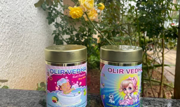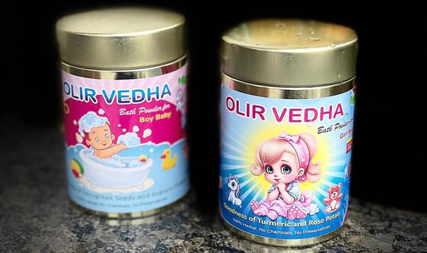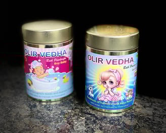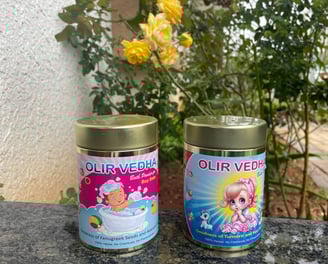 Chemical-free herbal baby bath powder for gentle cleansing and glow.